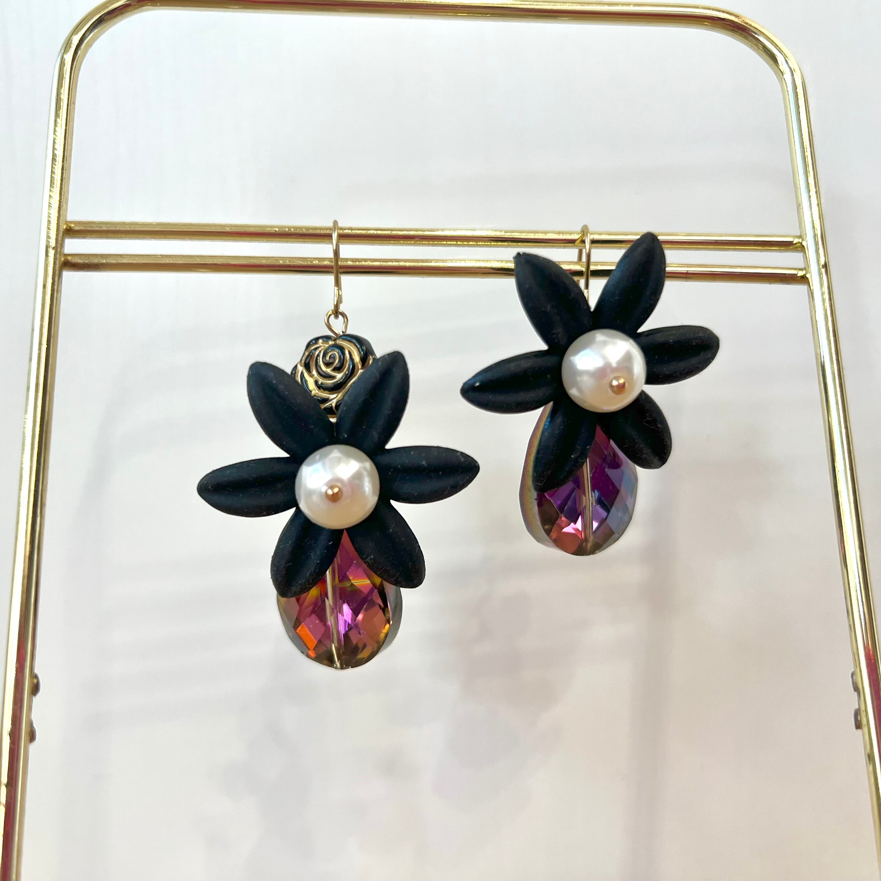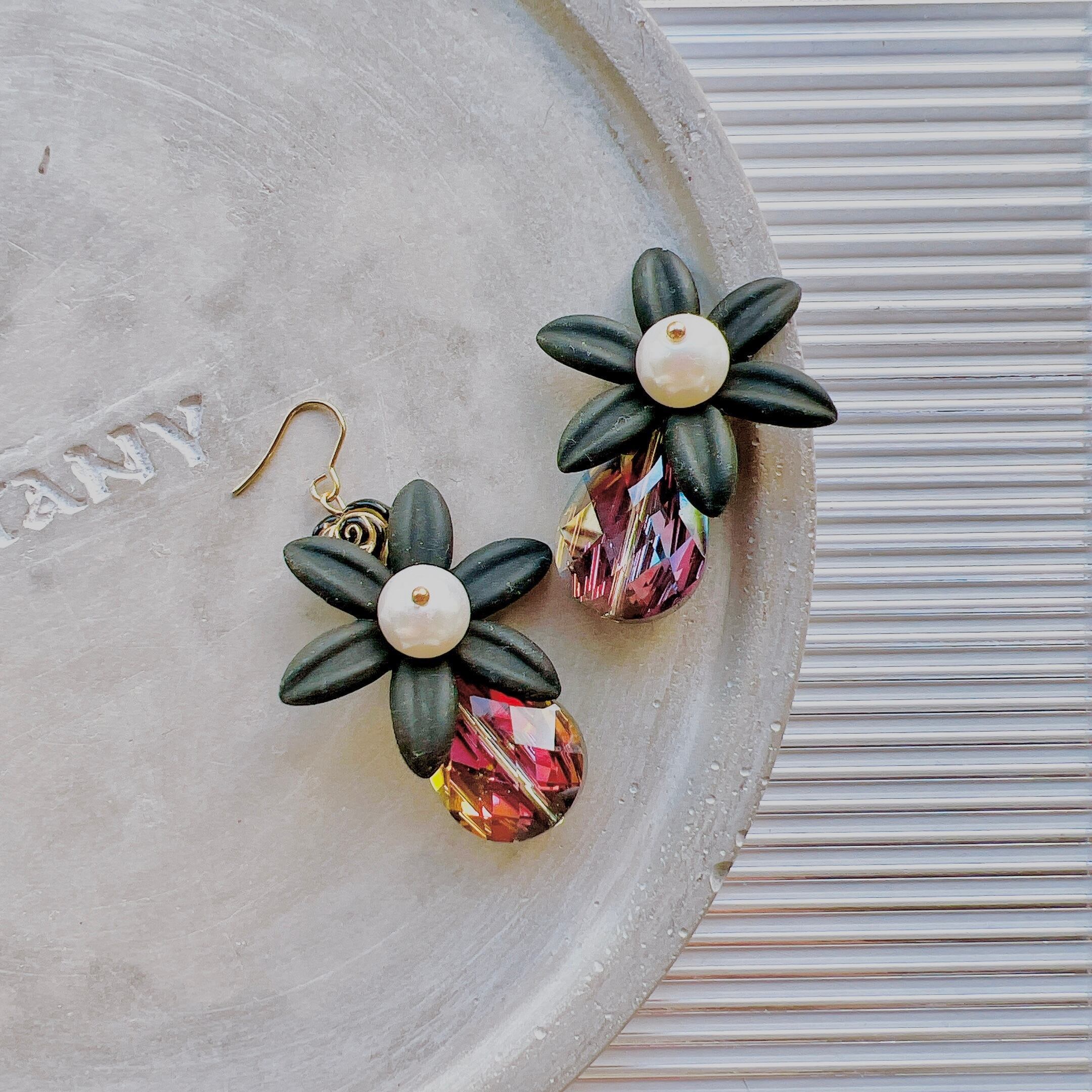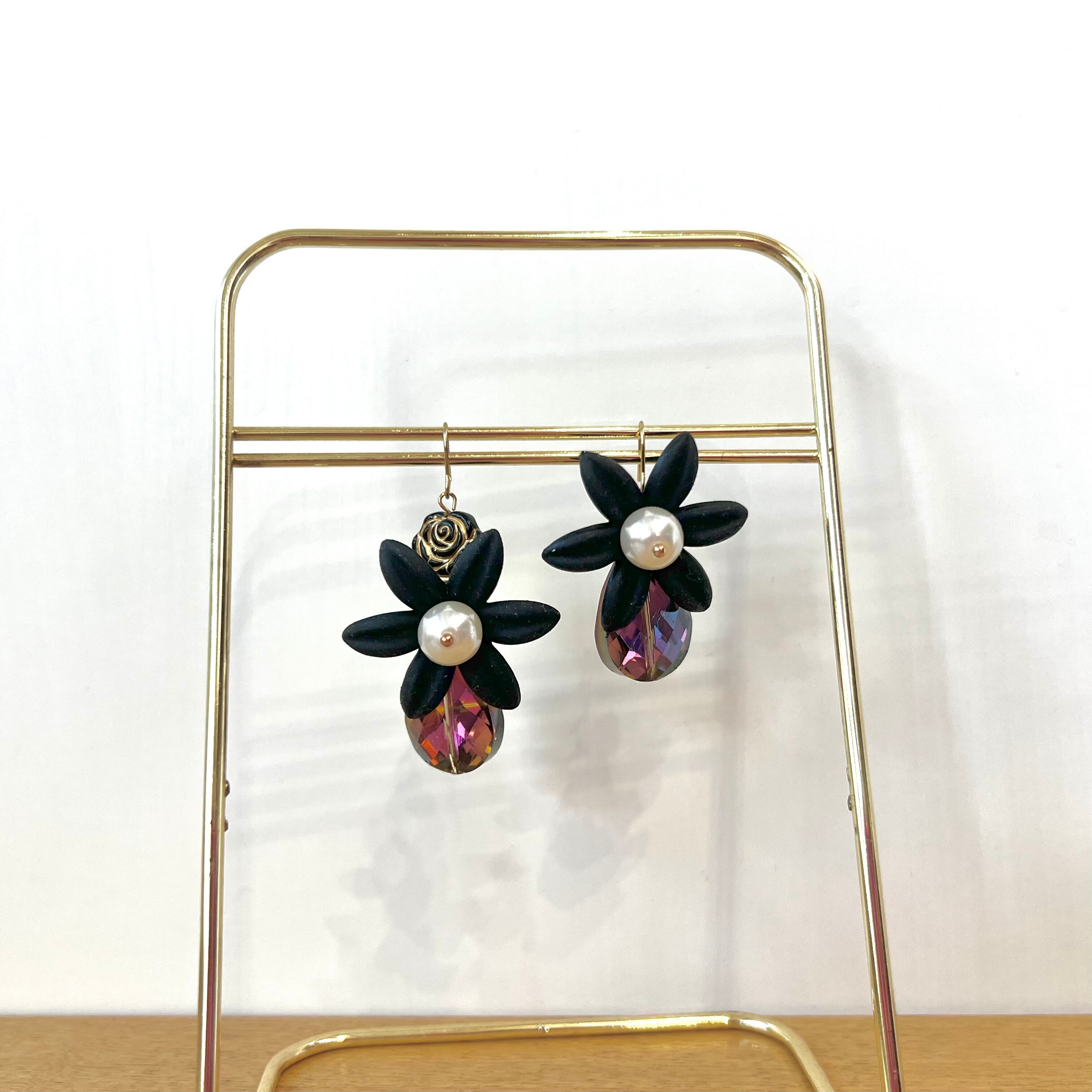 アシメブラックBIGフラワーピアス・イヤリング°・*:.。.☆