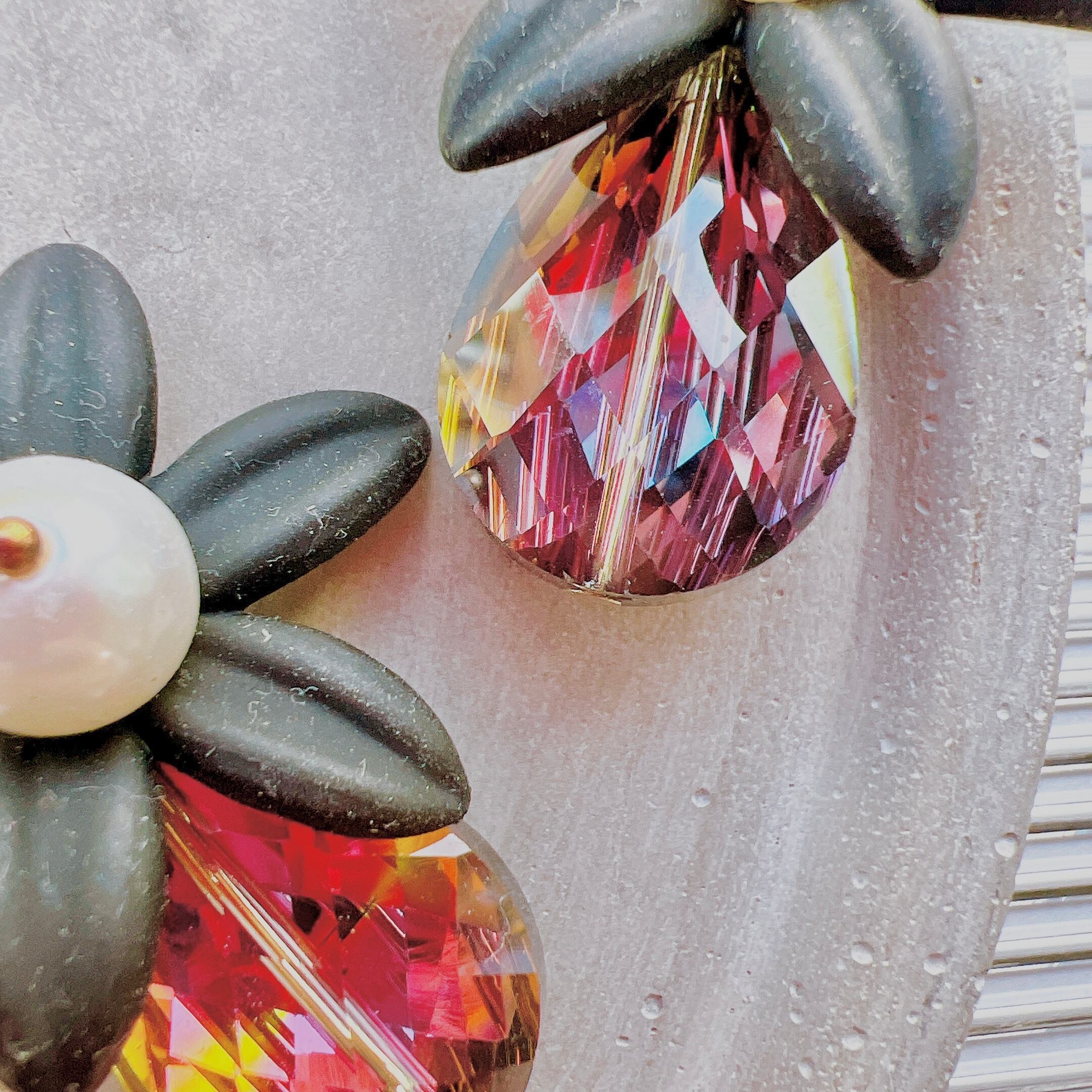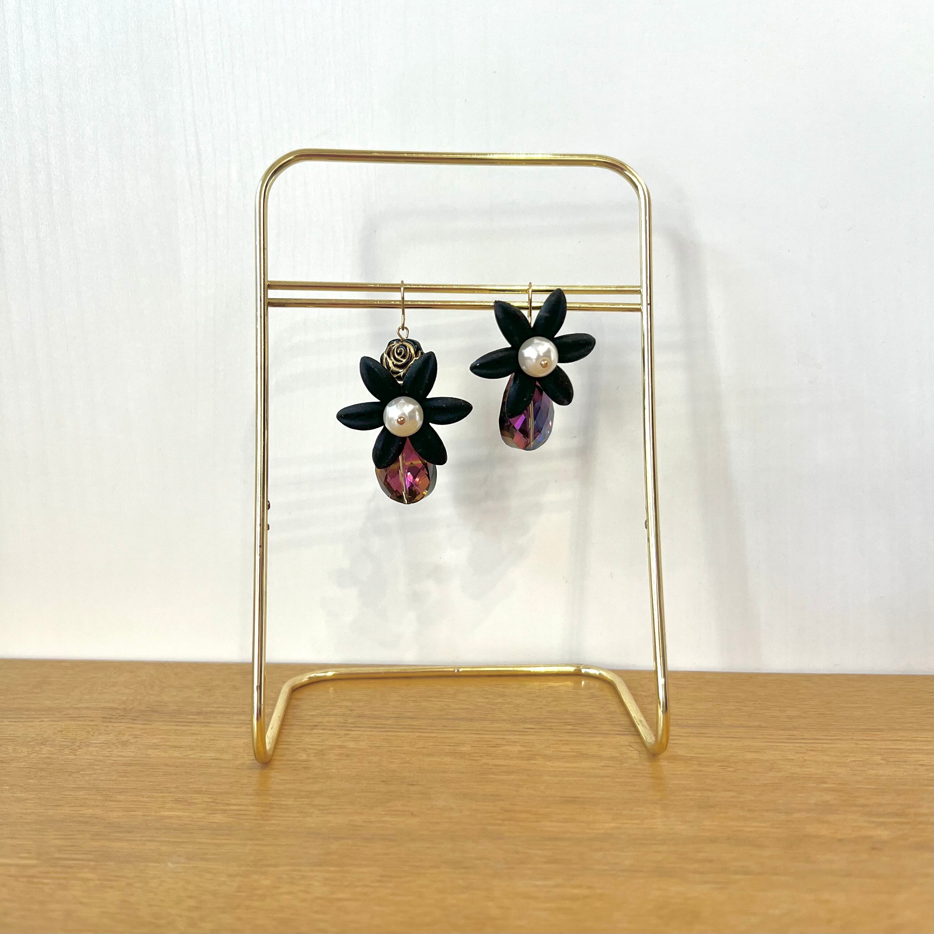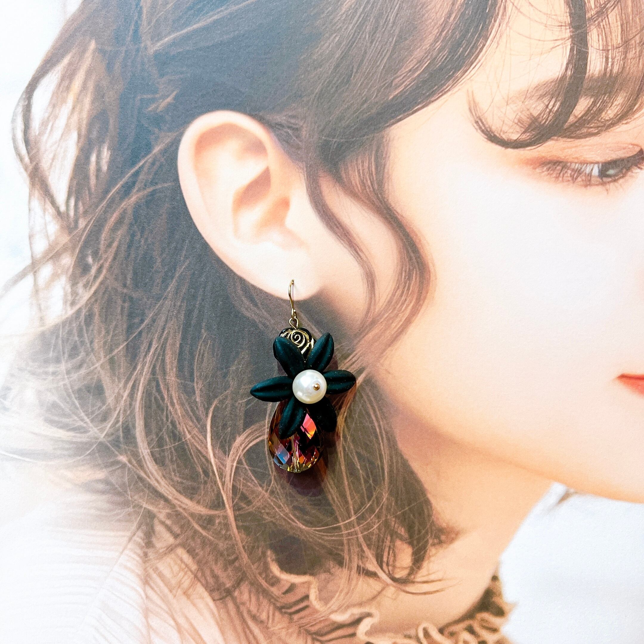 アシメブラックBIGフラワーピアス・イヤリング°・*:.。.☆