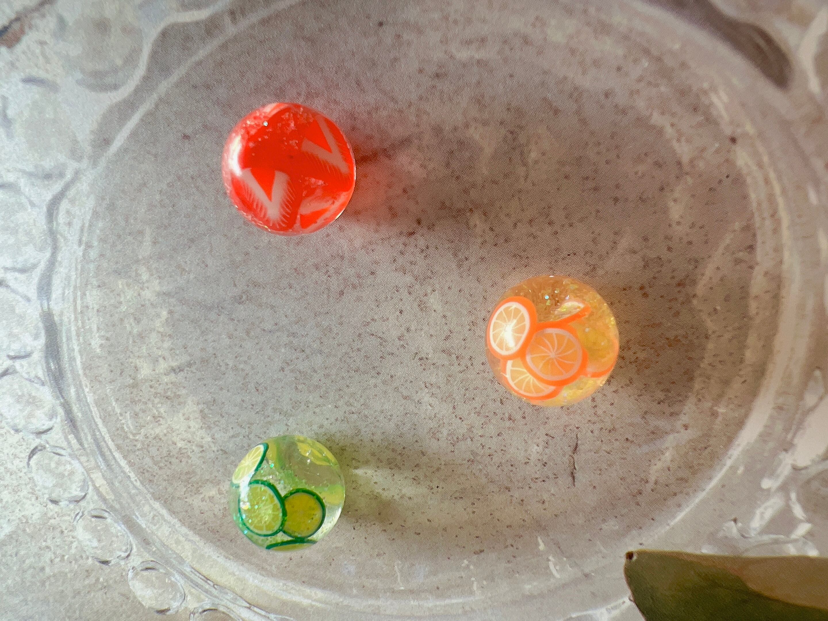 クリアのレジンにそれぞれの色に合わせたラメをIN