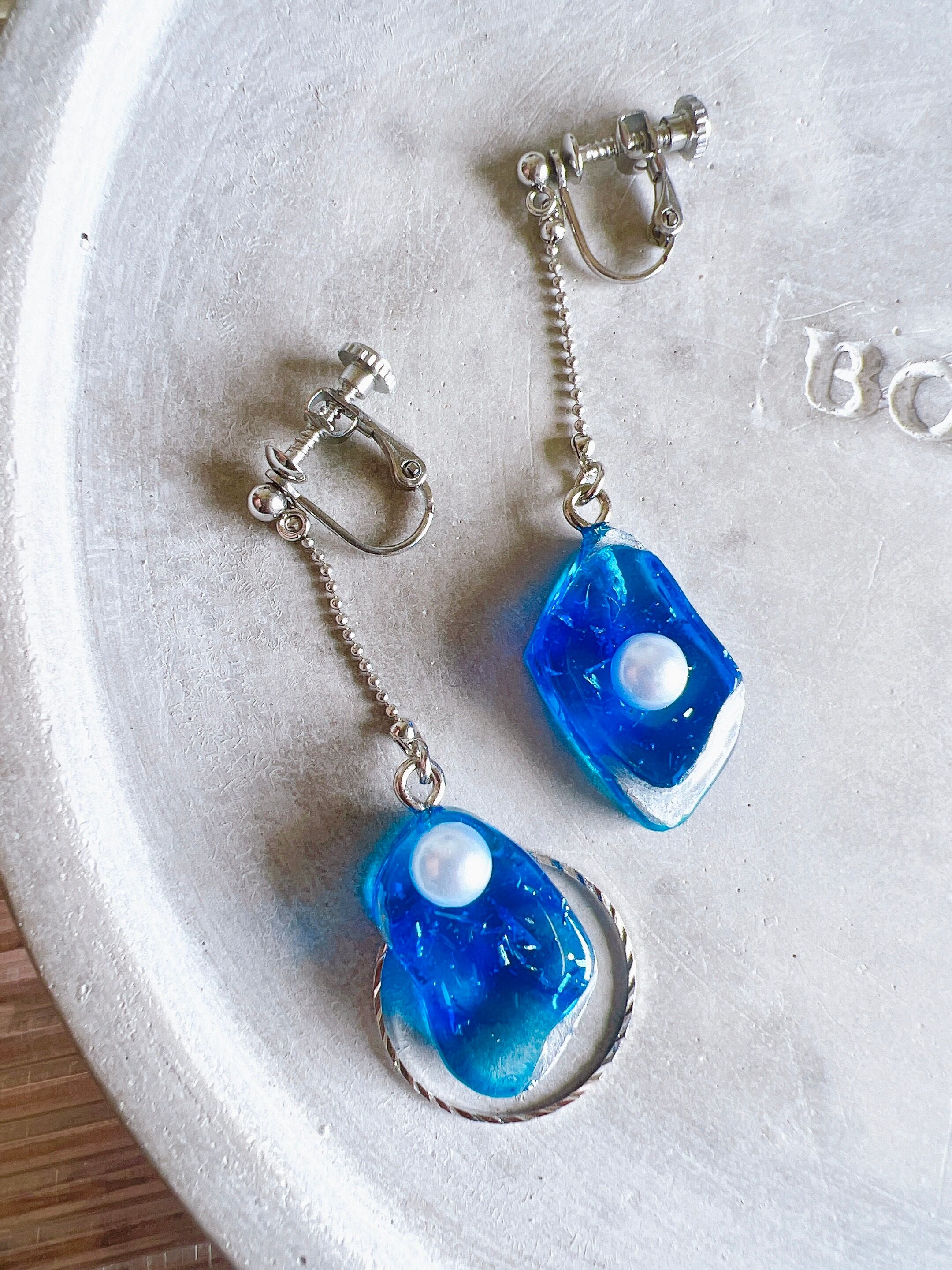 ブルーのレジンロングピアス・イヤリング°・*:.。.☆