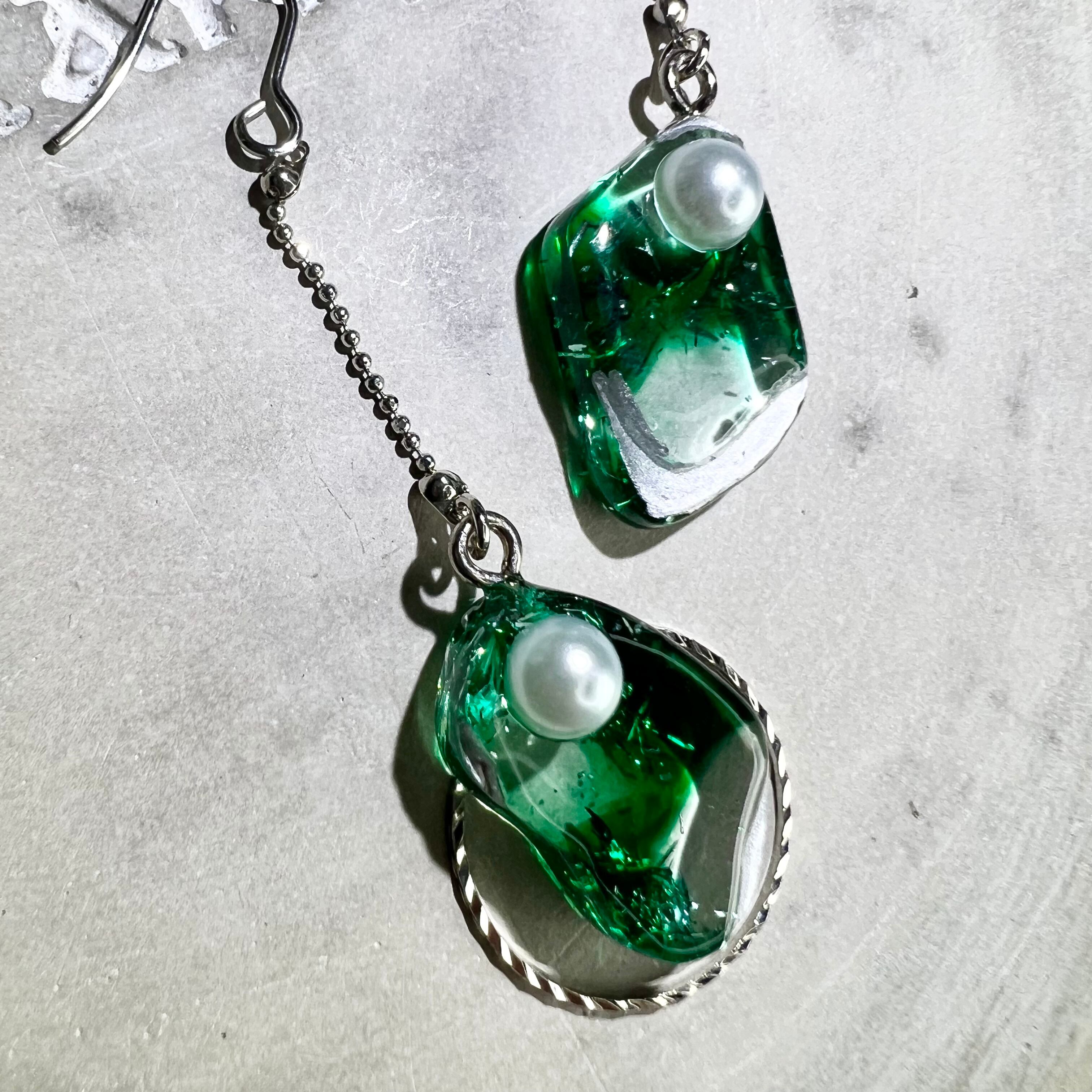 グリーンのレジンロングピアス・イヤリング°・*:.。.☆