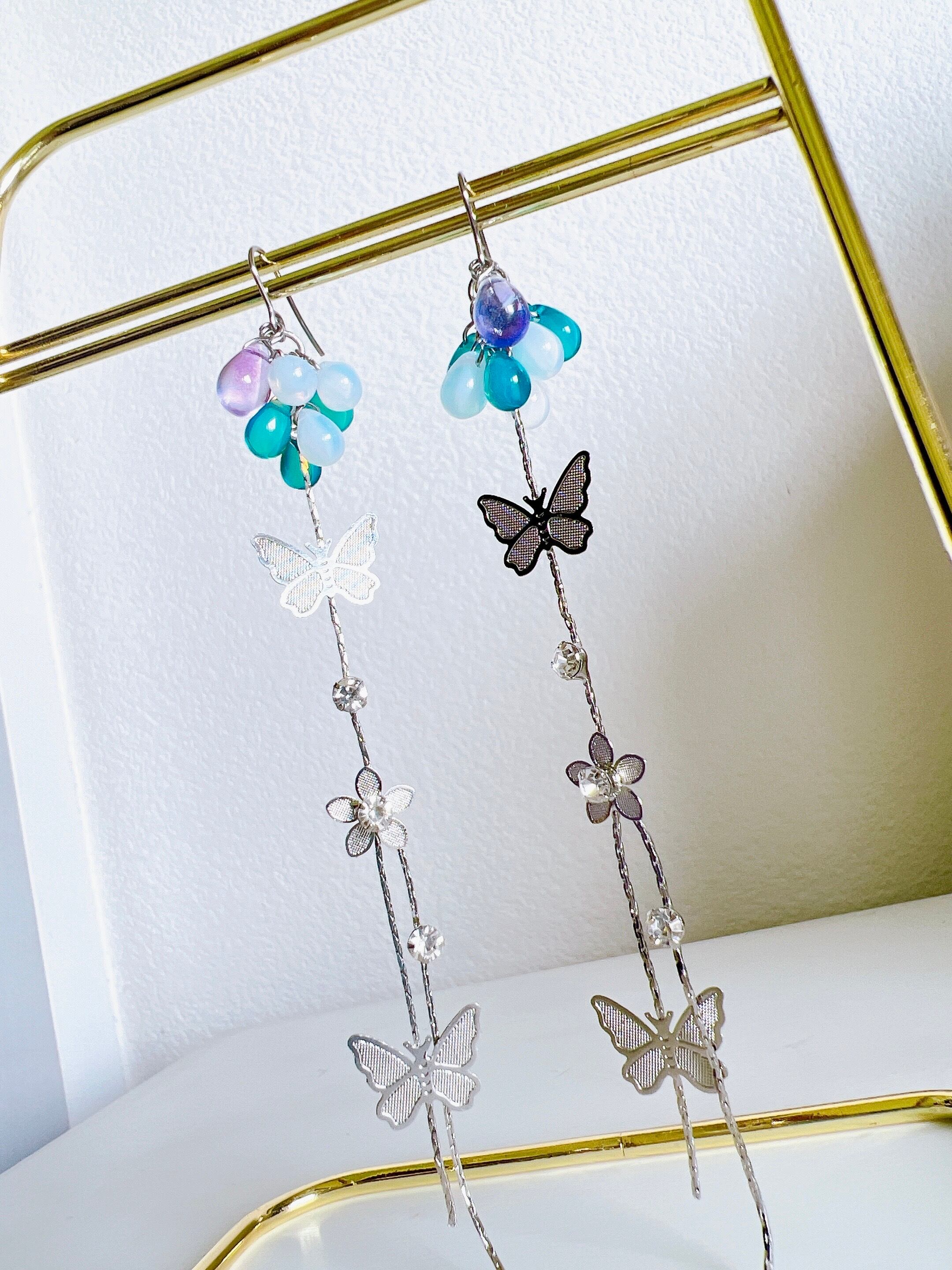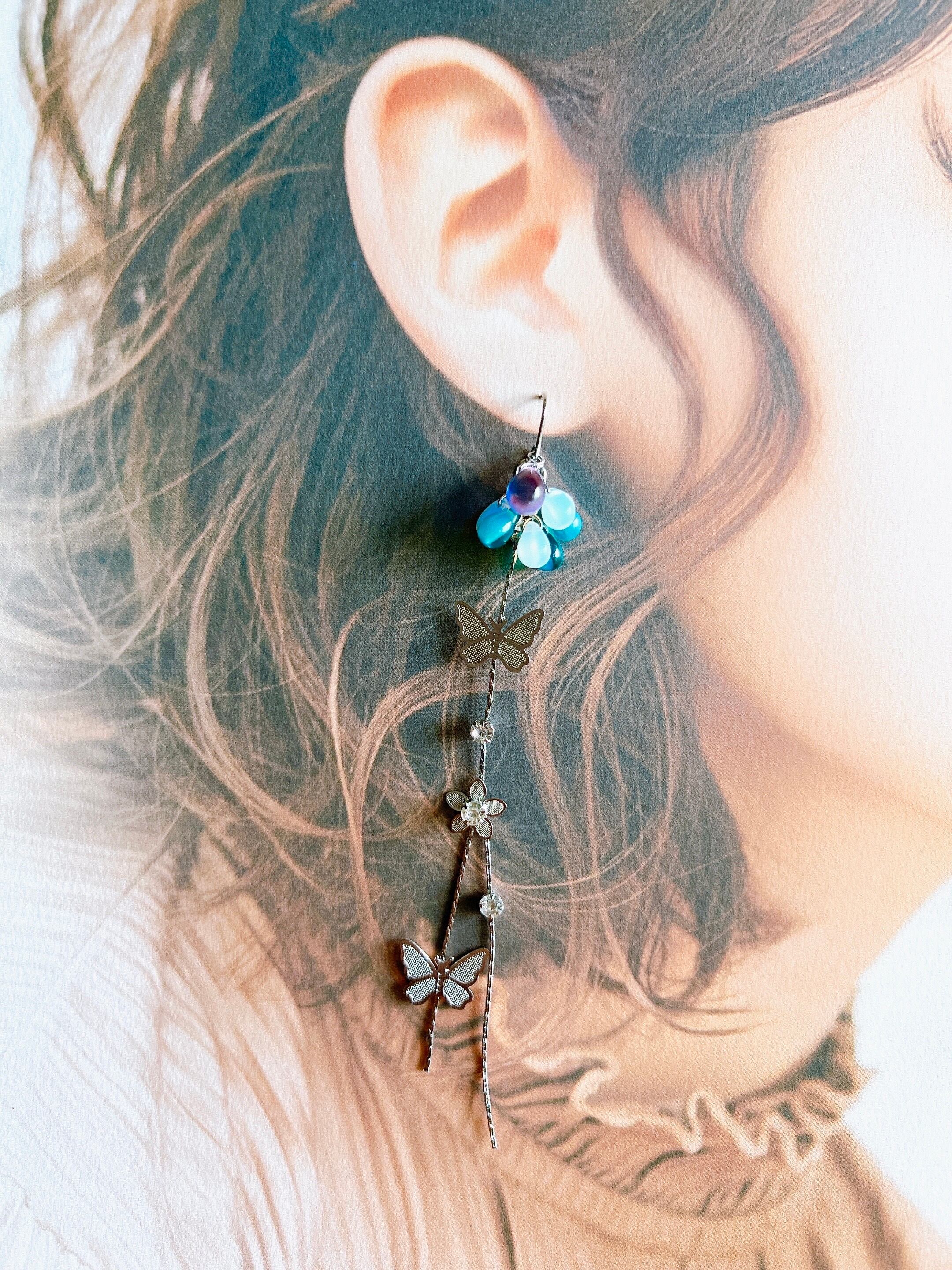 チェコガラスの蝶ロングピアス・イヤリング°・*:.。.☆