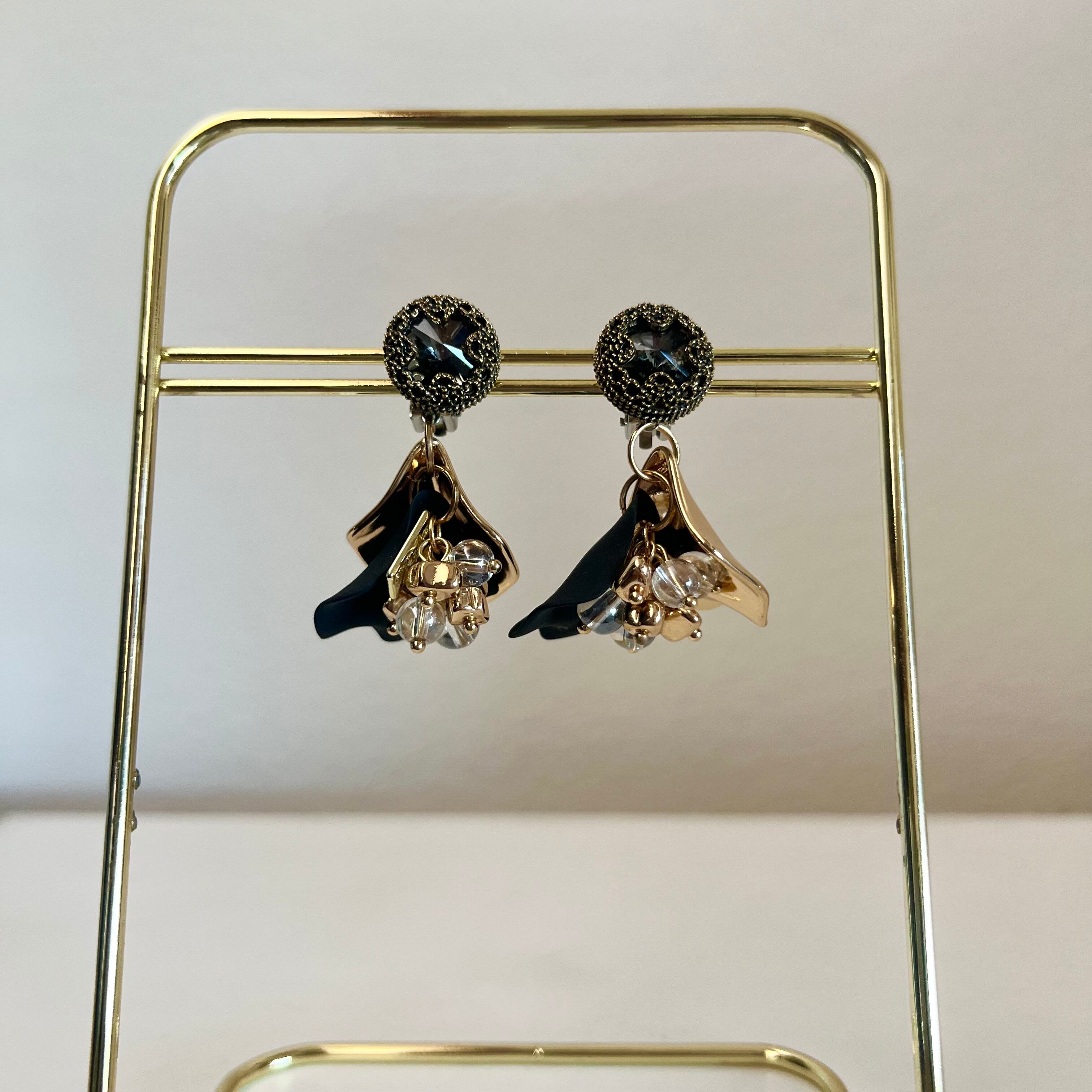 ブラックゴールドの花びらピアス・イヤリング