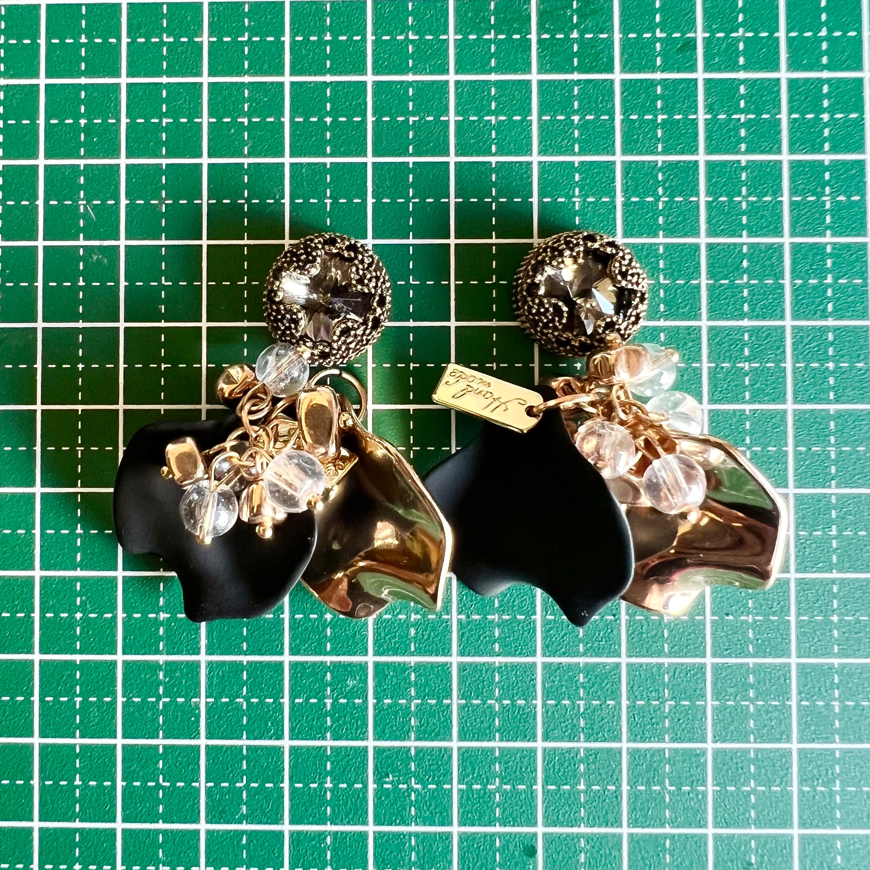 ブラックゴールドの花びらピアス・イヤリング°・*:.。.☆