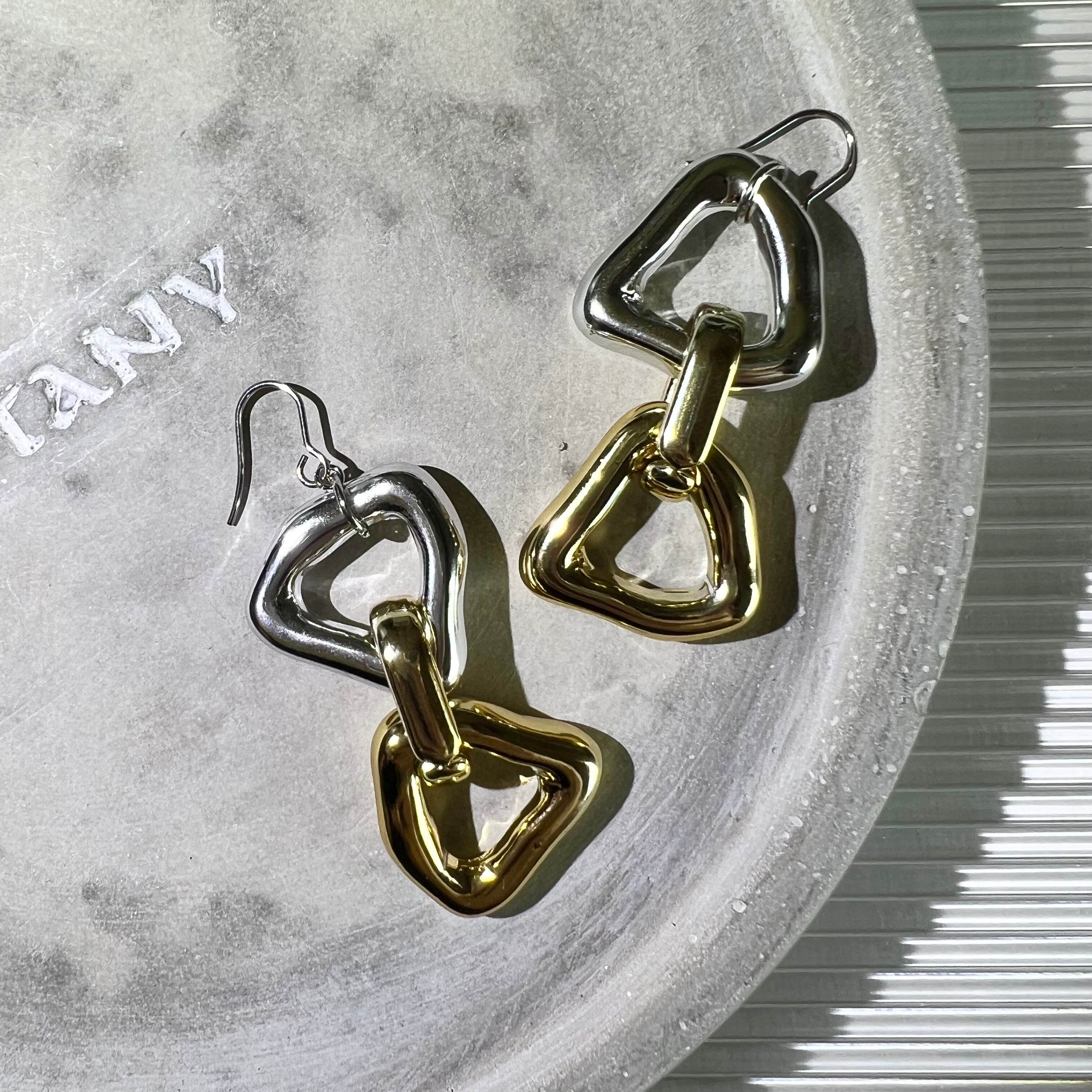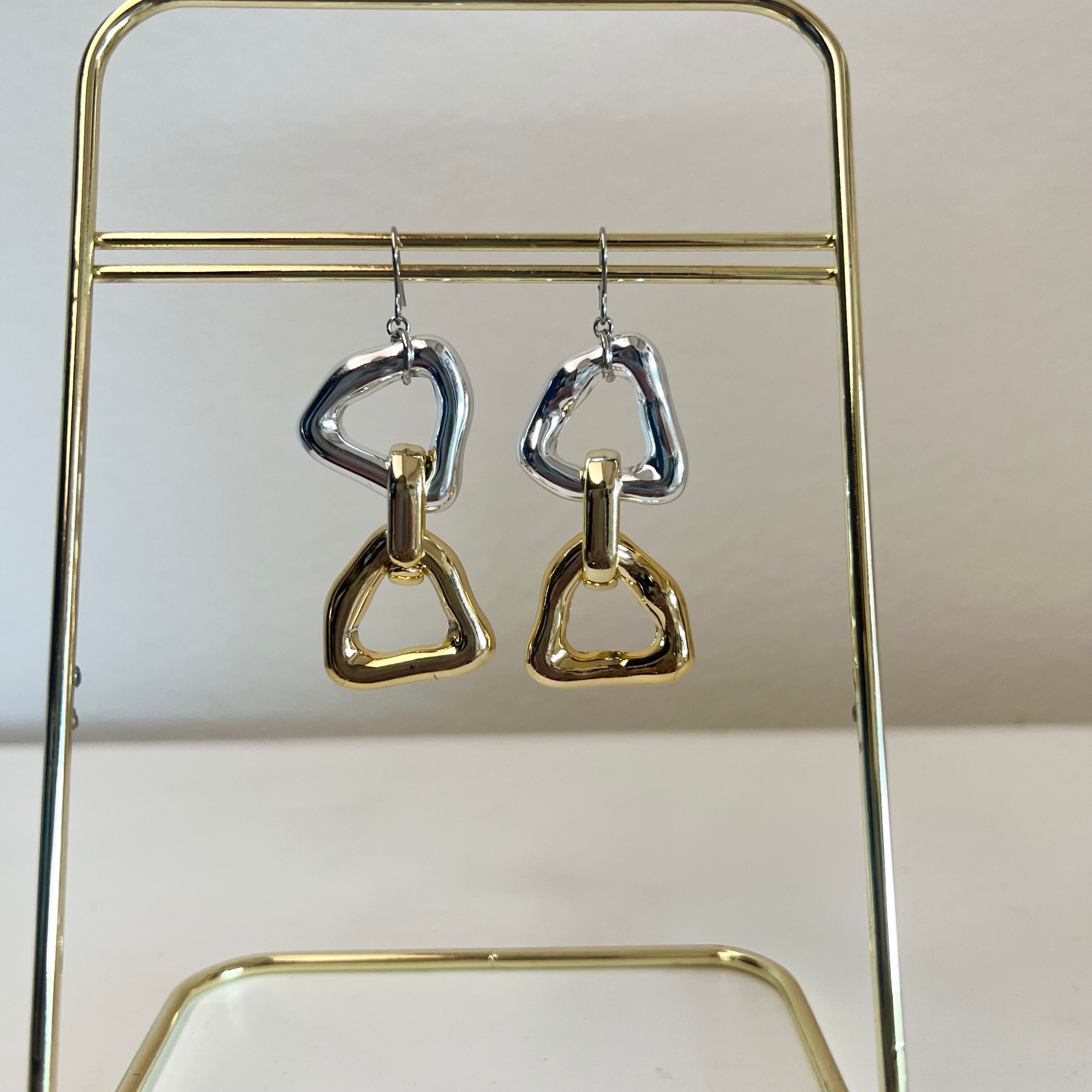 シルバーゴールドの大ぶりピアス・イヤリング°・*:.。.☆