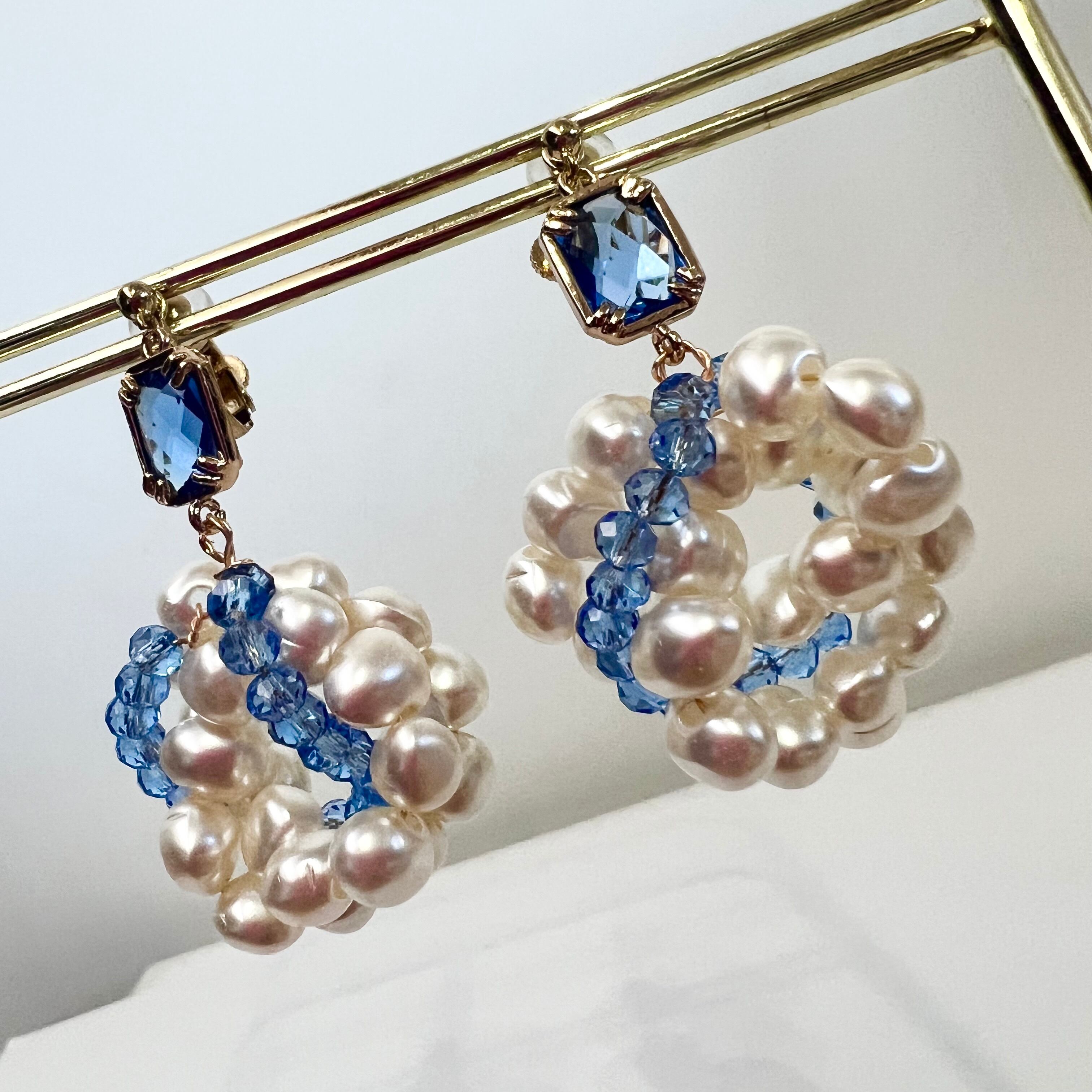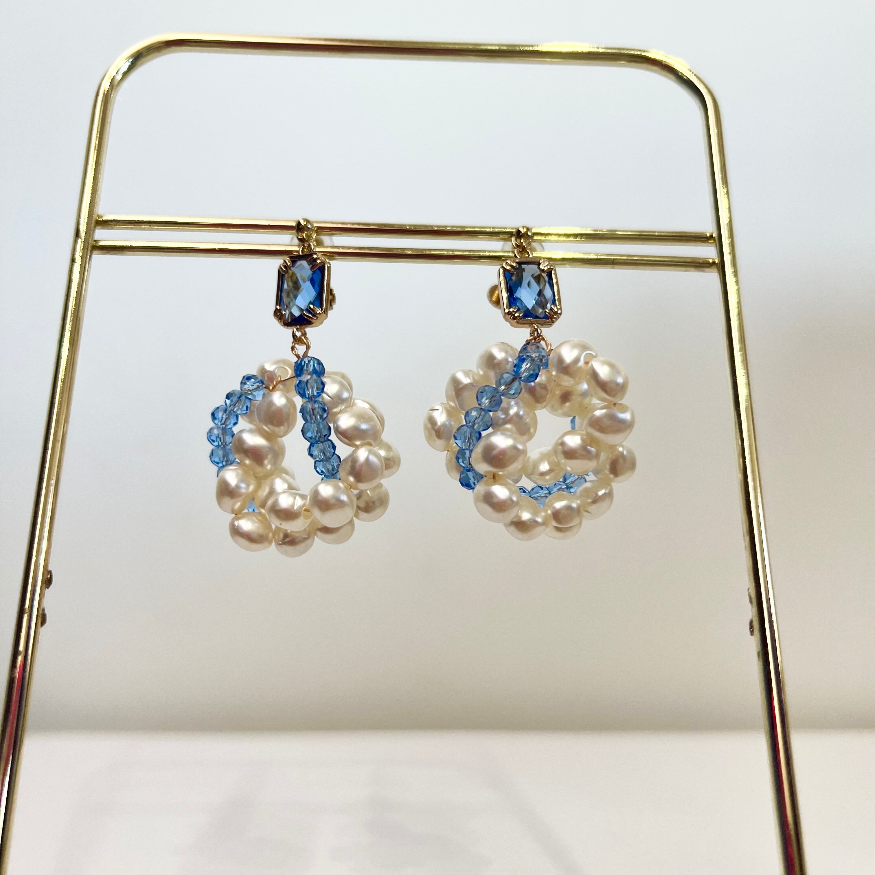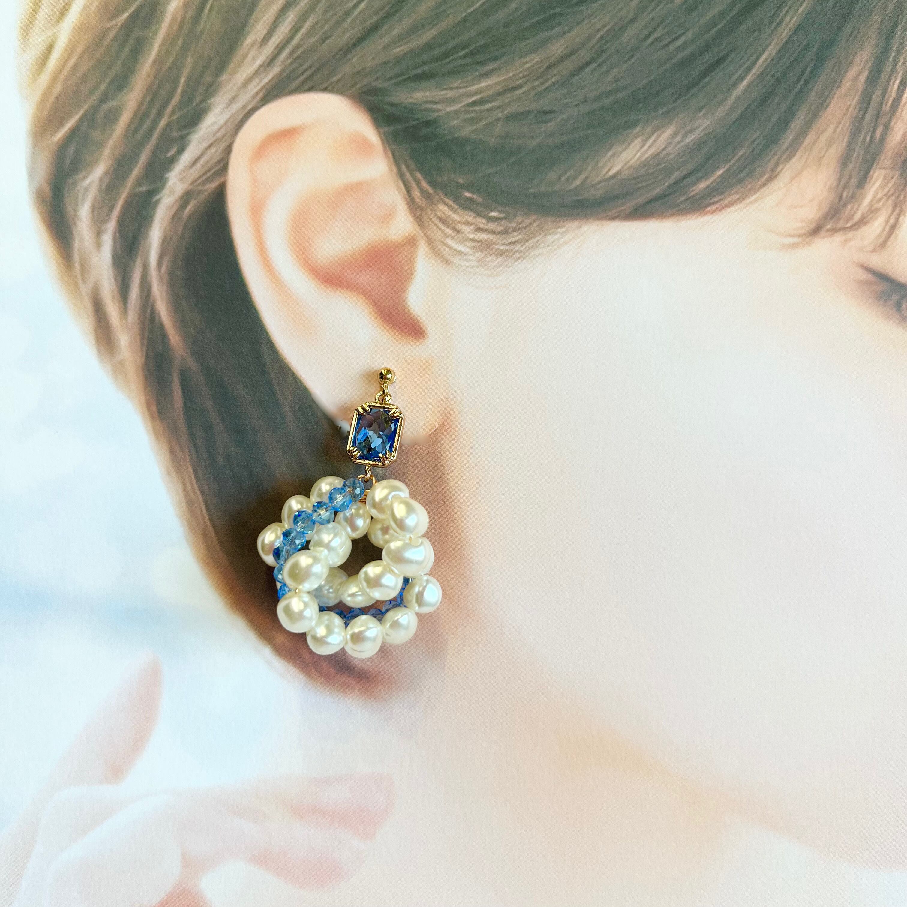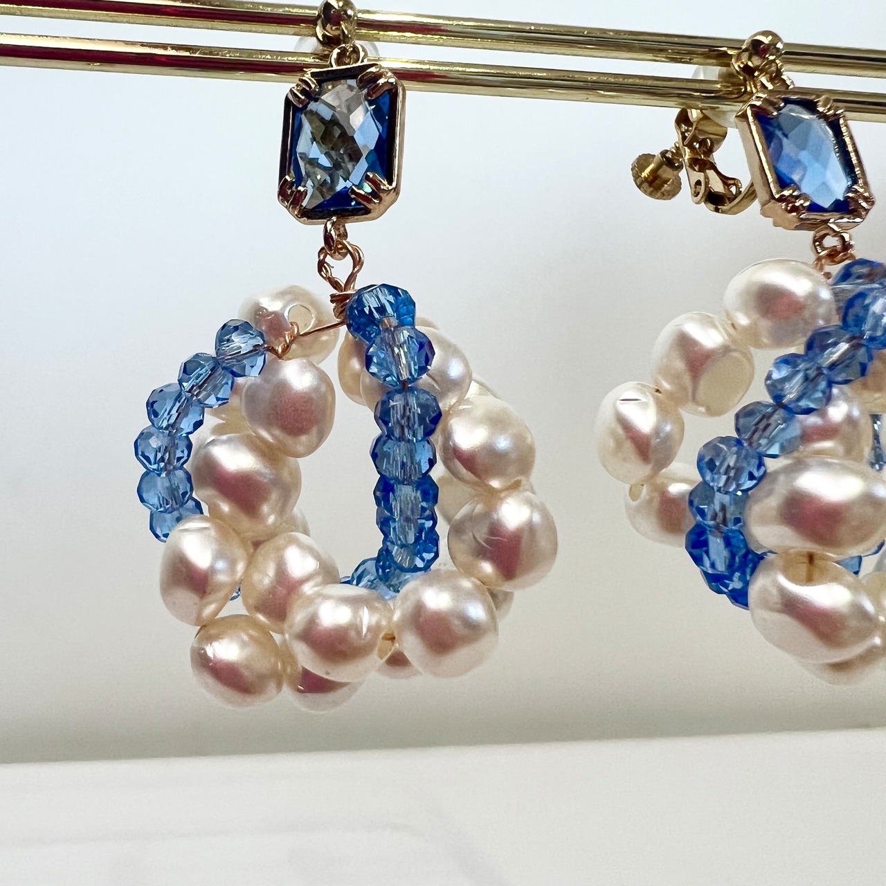 ビーズとパールのフープピアス・イヤリング°・*:.。.☆