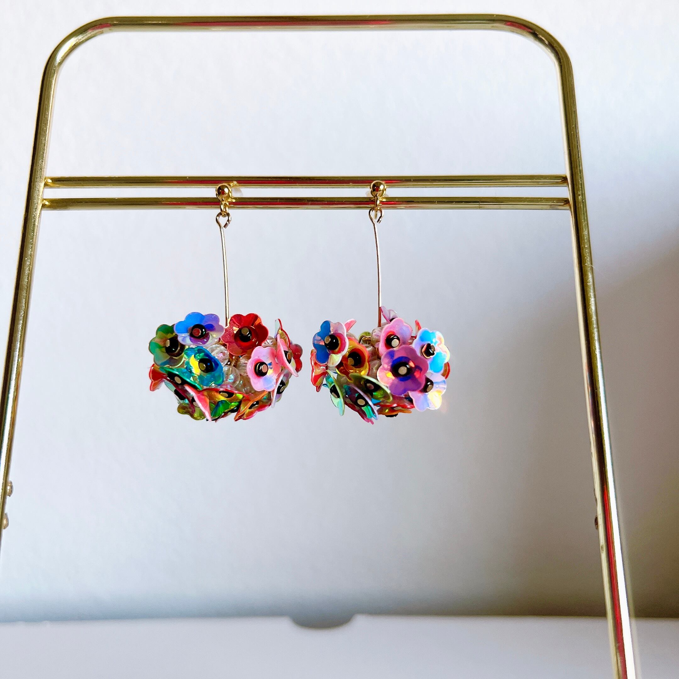スパンコールのカラフルブーケピアス・イヤリング°・*:.。.☆